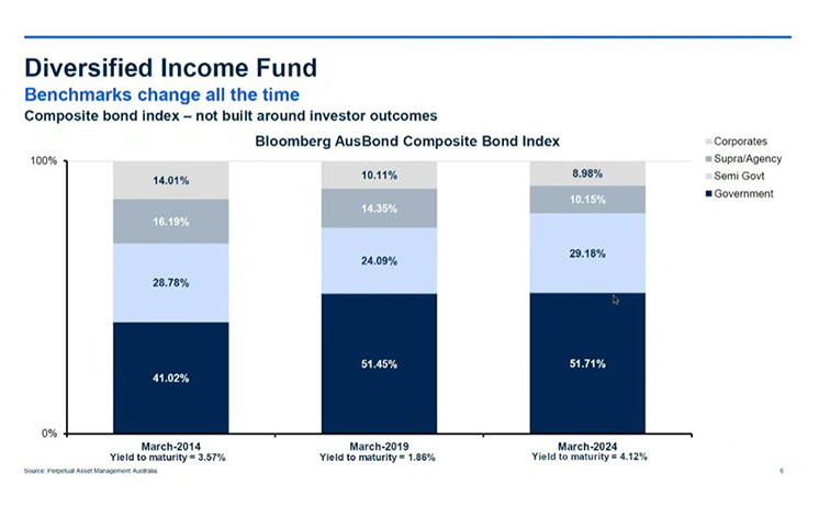 “As a passive investor, a decade ago you were collecting a credit yield premium on 14% of the passive replication of the Bloomberg AusBond Composite index benchmark.