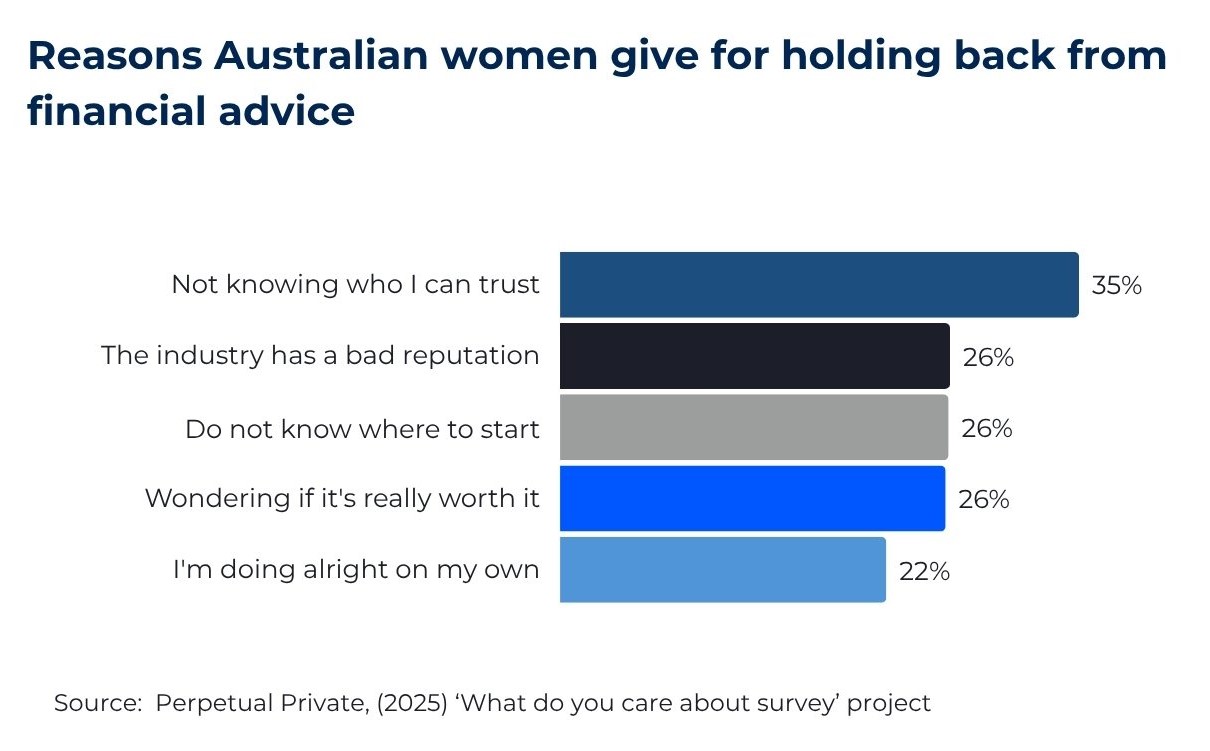 While many women express strong reasons to seek financial advice, they also share compelling reasons for hesitation. The top five reasons women considering advice have not followed the path are shown in the chart below.