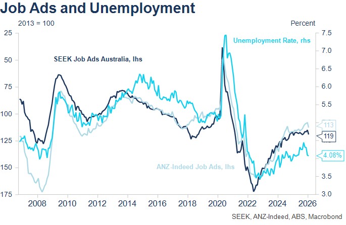 Governor Bullock appears in an evening fireside chat on Wednesday after the CPI, while the RBA’s Head of Economic Analysis, Michael Plumb, addresses the Australian Business Economists’ Annual Forecasting Conference on the topic “Australian Economic Outlook 2026”. That speech is likely to follow the script of the February Statement on Monetary Policy closely.